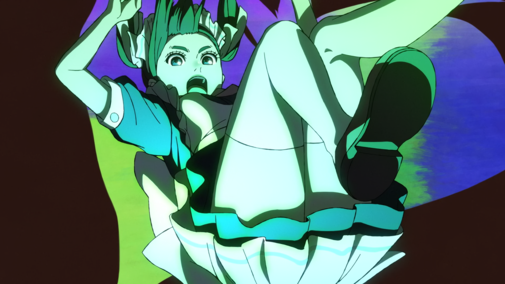本季度最喜欢的动画之一。开播前就计划看,是 EGG FIRM 又来不做无职转生来做其他的动画,质量感觉是有保障的。结果又是一部很火的动画,质量和剧情都是上等的。但是有些很难说的其他感受,可能有一些专业性在里面,能对矿物感兴趣的观众肯定要更喜欢些。唯一要吐槽的大家都经常说,就是这遇见矿物的概率,以及矿物的数量实在是让我这个外行都觉得有些浮夸 (不过毕竟是动画嘛,也没啥关系) 。有九集琉璃走到户外 (楼外) 的镜头我特别喜欢,给我留下了很深的印象 (下方图) 。感觉片头和片尾没那么喜欢了,片头显得很宏大,有种异世界的感觉了 (来到了隔壁无职转生);片尾就很有神话的感觉了,或者有种神圣的感觉?我还是更倾向于萌豚那种音乐和动画风格,接近正片就好。另外,很喜欢这种四人的主角团。人数过多了叙事感觉就蛮分散的,这样四个人分别组合来讲故事,是非常不错的,既能讲单个角色也能讲好每个人之间的故事。